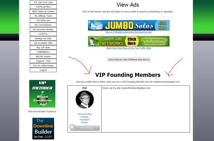 Reason #4 ($997 Value): VIP Founding Members will get a "VIP Members" spotlight area under the new View Ads section where all Founding Members are showcased to EVERY MEMBER that goes to view ads. Every time a member clicks to view more ads, a different set of 5 Founding Members will be shown to the user viewing ads. This means long-term repeat exposure to your website and blog and to any site you want to mention in the "about me" section. This is HUGE Value!